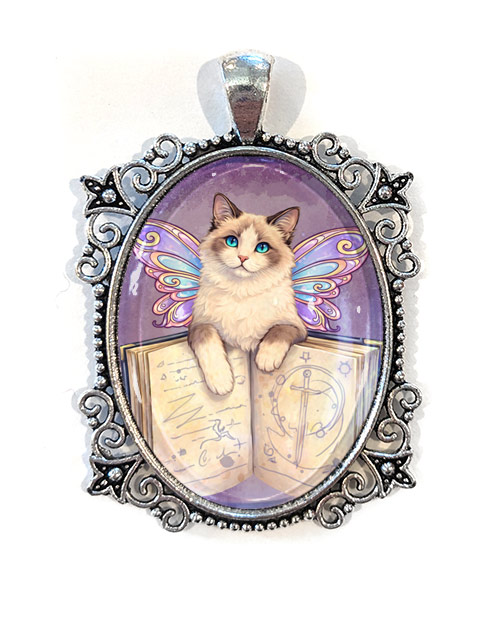 This pendant contains a 3x4cm (1.1 x 1.5 inches) archival quality print set under glass for protection, in a pendant frame made from tarnish resistant zinc alloy.