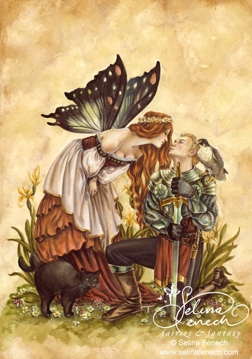 An homage to La Belle Dame sans Merci, this artwork shows a fairy and her knight with their animal companions.