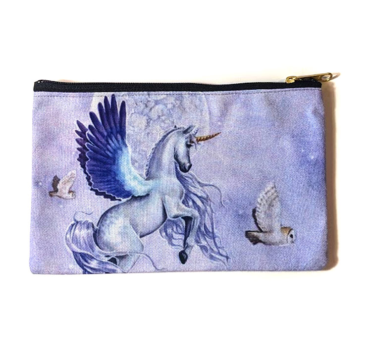 A super handy 5.5 x 8.25 inches, 14 x 21 cm in size, these zipper pouches have a full colour artwork on both sides, printed on sturdy canvas.