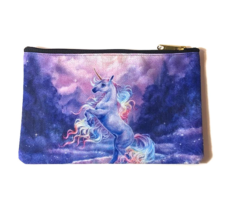 A super handy 5.5 x 8.25 inches, 14 x 21 cm in size, these zipper pouches have a full colour artwork on both sides, printed on sturdy canvas.